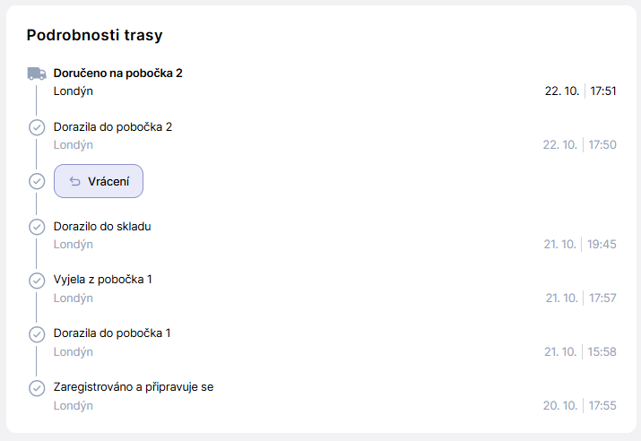 Informace o stavu doručení a vrácení jsou k dispozici: