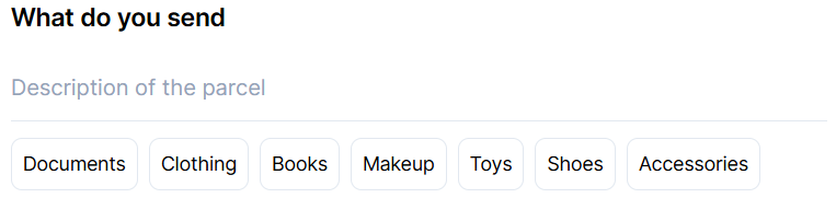 📝 Quickly fill in the shipment description. The shipment creation frame has been updated, allowing you to fill in the shipment description with a single click. Currently, the list of options is fixed, but we are working on developing custom versions that each individual customer can fill in according to their requests.