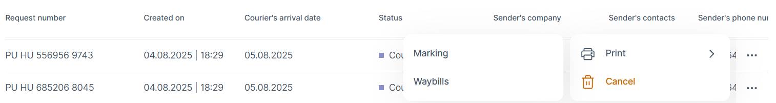 🖨️ Mass printing for pickup requests. We added the option to print labels, waybills, or shipping invoices attached to pickup requests in just two clicks.